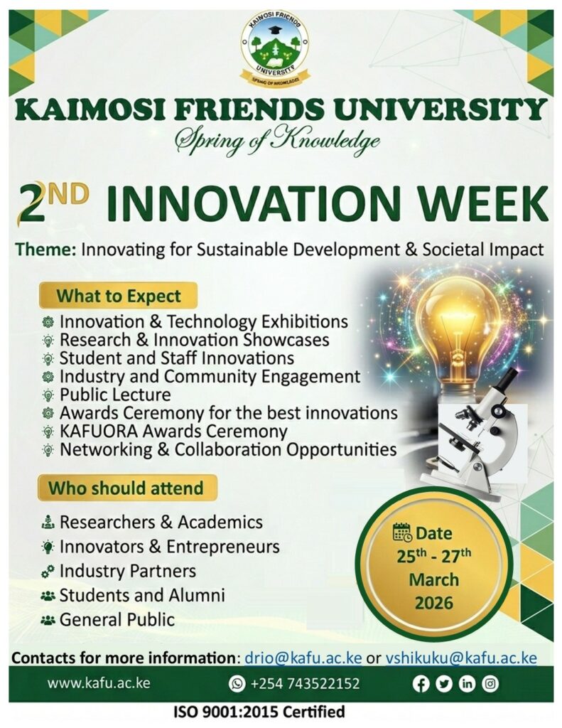 About The Event Location Kaimosi Friends University + Google Map Leave your thought here Cancel replyYour email address will not be published. Required fields are marked * Save my name, email, and website in this browser for the next time I comment. Cost Free Event date March 25, 2026 March 27, 2026 Event time 8:00 am - 5:00 pm Total Slot 0 Booked Slot 0 This event has expired