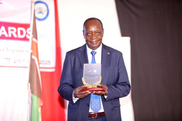 Governor Dr. Wilber Ottichilo holds the trophy presented to Kaimosi Friends University after the institution was awarded the Best Higher Education Institution in the County during the Business Awards ceremony