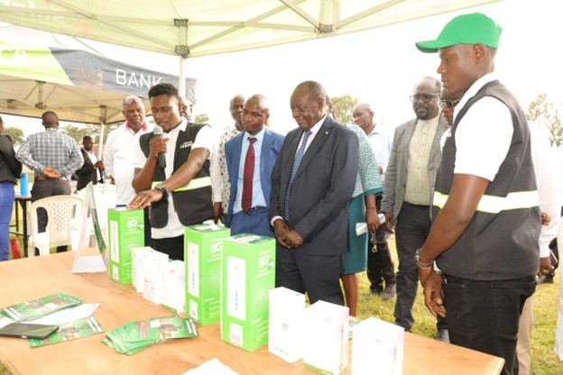 Exhibitors showcase their innovations and products to Governor Dr. Wilber Ottichilo during the Business Awards ceremony at KAFU.