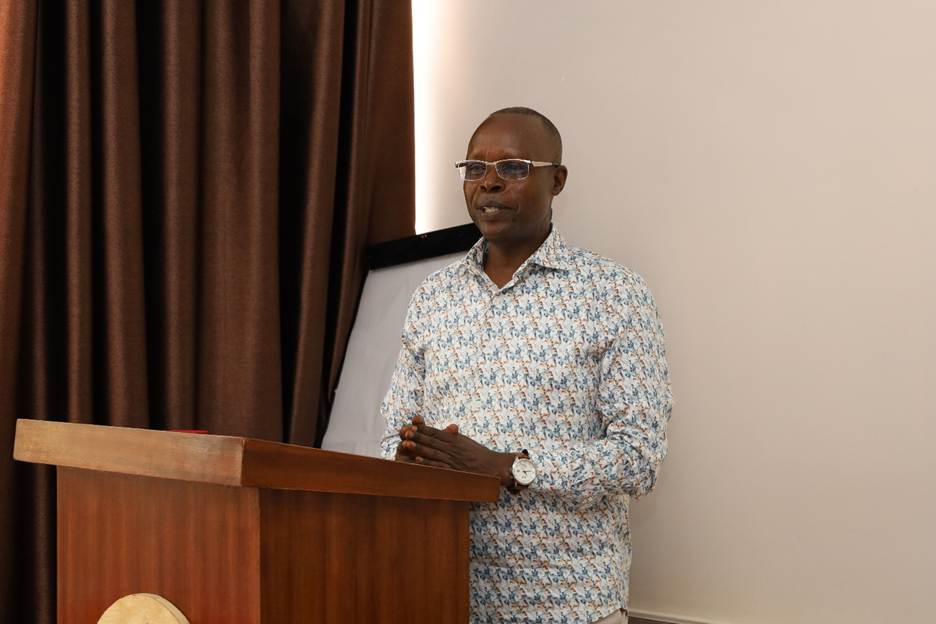 Prof. Prof. Thomas Kipkurgat delivers his address during the 4th KAFUSA Students Governing Council leadership workshop at Sunset Hotel, Kisumu.